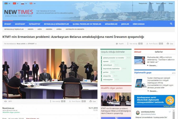 Ədalət naminə deyək ki, bu məsələlərin də heç biri olduğu kimi təqdim edilməyib, xəstə erməni siyasi və ideoloji şüurunun təhrifləri süzgəcindən keçirilərək ictimaiyyətə zorla yeridilir. Bu da səbəbsiz deyil. Məsələnin mahiyyəti ondan ibarətdir ki, Azərbaycan Prezidenti İlham Əliyev təcavüzkarlığına görə Ermənistanın siyasi-iqtisadi və kommunikativ təcridi prosesini başa çatdırır. Bununla yanaşı, müstəqil siyasət yeridən dövlətlər artıq dərk edirlər ki, Azərbaycanla əməkdaşlıqdan yalnız faydalana bilərlər. Rəsmi Bakı real konstruktiv, sivil, demokratik və beynəlxalq hüquq normalarına tam uyğun siyasət yeridir və qarşılıqlı faydalı əməkdaşlıq üçün açıqdır.