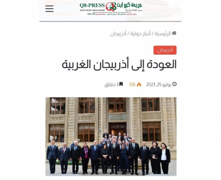 Küveytin “q8-press.com” xəbər saytında “Qərbi Azərbaycana qayıdış” sərlövhəli məqalə dərc olunub.