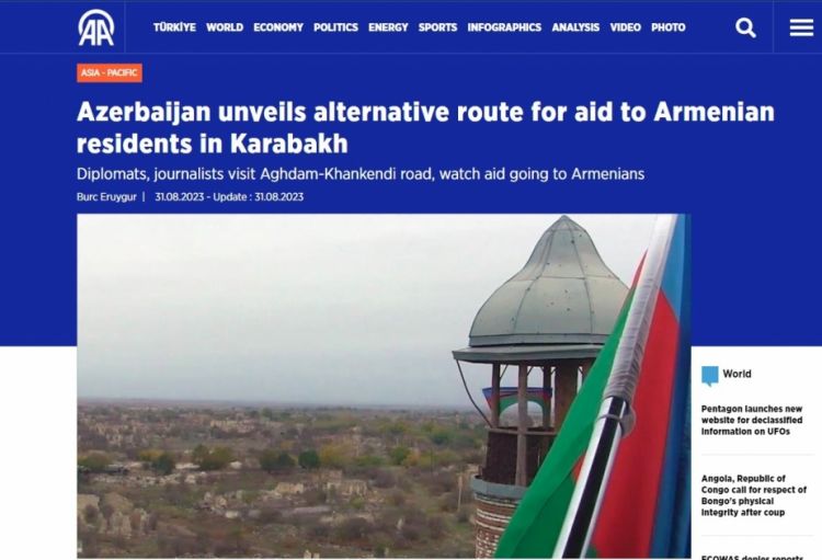 Qarabağ iqtisadi rayonunda yaşayan erməni əsilli şəxslərin ehtiyaclarını qarşılamaq üçün Azərbaycan Qızıl Aypara Cəmiyyəti tərəfindən ərzaq yükünün ayrılması və bu yükün ünvana Ağdam-Xankəndi yolu ilə çatdırılmasının planlaşdırılması Anadolu Agentliyində işıqlandırılıb.
