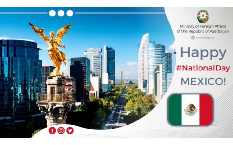 Azərbaycan Xarici İşlər Nazirliyi (XİN) Meksika Birləşmiş Ştatlarını Milli Günü münasibətilə təbrik edib.