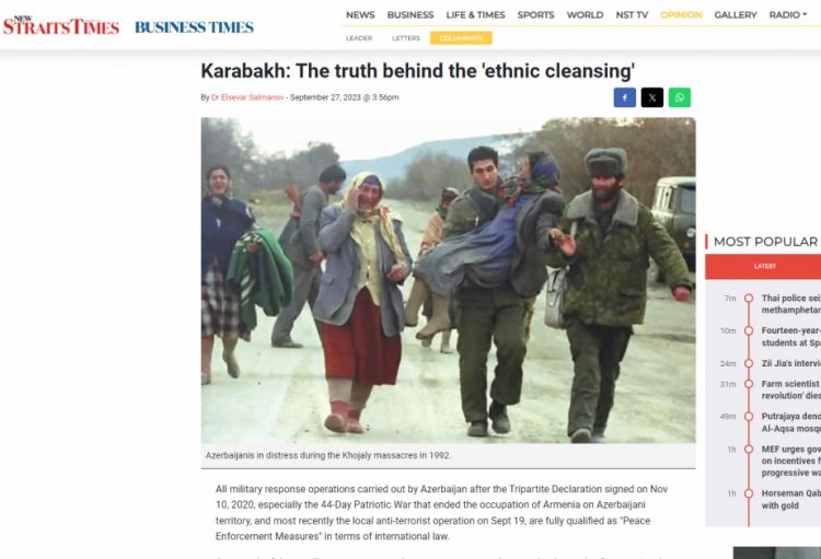 Malayziyanın nüfuzlu “New Straits Times” qəzeti “Qarabağ: “Etnik təmizləmə”nin arxasında duran həqiqət” sərlövhəli məqalə yayımlayıb.