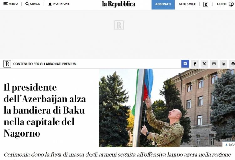 İtaliyanın nüfuzlu “La Repubblica” qəzeti Azərbaycan Prezidenti İlham Əliyevin Xankəndi şəhərinə səfərinə yer ayırıb.