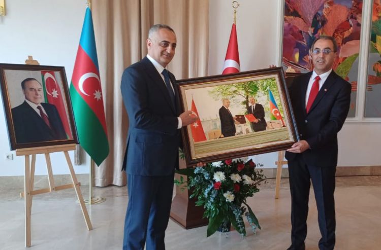 Səlahiyyətli nümayəndə Fuad Nəcəfli Türkiyənin Naxçıvandakı baş konsulu Asip Kayaya hədiyyə təqdim edib
