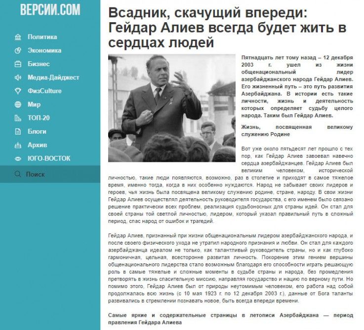 Məqalədə deyilir: “Heydər Əliyev hakimiyyətdə olarkən öz xalqının həyatında taleyüklü rol oynayıb. Bu illər Azərbaycanın salnaməsində ən parlaq və məzmunlu səhifələr olub. Bu gün Azərbaycan tanınmayacaq dərəcədə dəyişib. Heydər Əliyevin ölkədə qayda yaratmağa yönəlmiş titanik fəaliyyəti neft strategiyasının inkişafı ilə paralel gedirdi. Ölkənin davamlı iqtisadi inkişaf, sosial vəhdət, milli birlik strategiyasının hazırlanmasında Heydər Əliyevin xidmətləri əvəzsizdir. Ümummilli Liderin sayəsində Azərbaycanın öz dövlətçilik yolu formalaşıb, bu yol dünya siyasət elminə “İnkişafın Azərbaycan yolu” kimi daxil olub”.
