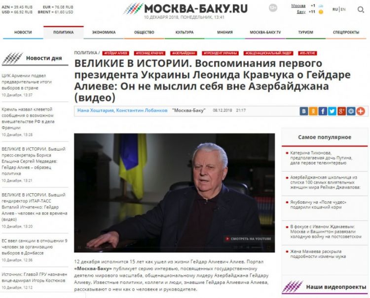NUHÇIXAN xəbər verir ki, L.Kravçuk Azərbaycan xalqının ümummilli lideri Heydər Əliyev haqqında xatirələrini bölüşüb. O deyib: