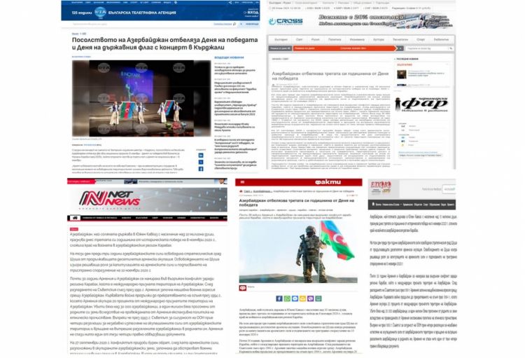 Bolqarıstan mediasında Azərbaycanın 8 Noyabr - Zəfər Gününün siyasi və tarixi əhəmiyyəti barədə silsilə məqalələr yayılıb.