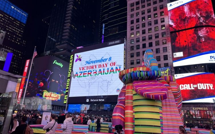 Nyu-Yorkun rəmzi hesab olunan və hər gün minlərlə turistin ziyarət etdiyi "Times" meydanında nəhəng monitorlarda "8 Noyabr Azərbaycanın Zəfər Günüdür!" şüarı nümayiş olunub.
