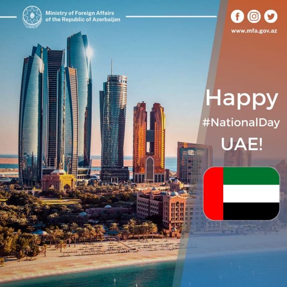 Azərbaycan Xarici İşlər Nazirliyi (XİN) Birləşmiş Ərəb Əmirliklərini (BƏƏ) Milli Gün münasibətilə təbrik edib.