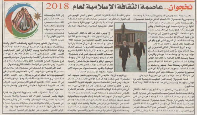 Mərakeşin geniş oxucu auditoriyasına malik “Əl-İslah və ət-Tənmiyə” qəzetinin növbəti sayında “Naxçıvan - 2018-ci ilin İslam Mədəniyyəti Paytaxtıdır” sərlövhəli məqalə dərc olunub.