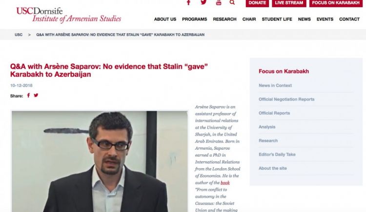 NUHÇIXAN xəbər verir ki, Cənubi Kaliforniya Universiteti yanında erməni tədqiqatları institutunun saytında yerləşdirilmiş Birləşmiş Ərəb Əmirliklərinin Şarca Universitetinin beynəlxalq münasibətlər kafedrasının dosenti Arsen Saparov ilə müsahibədə Azərbaycan ərazisində bolşeviklər tərəfindən süni şəkildə Dalıq Qarabağ Muxtar Vilayətinin (DQMV) yaradılması tarixindən bəhs olunur.