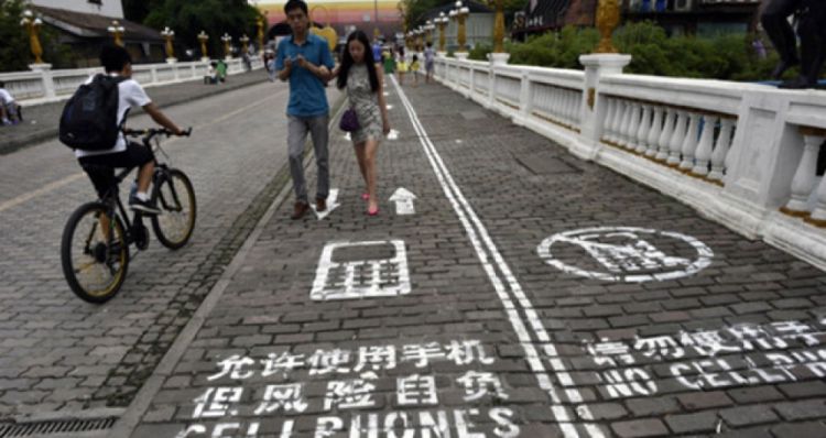 Çinin Şian şəhərində “ağıllı” telefonlara baxaraq yeriyən piyadalar üçün ayrıca zolaq yaradılıb.